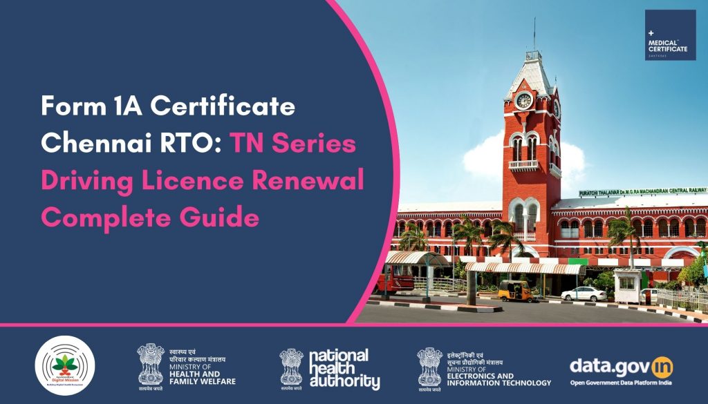 If you’re renewing a TN series driving licence in Chennai – whether it’s TN-01 (Chennai Central), TN-02 (Chennai North), TN-07 (Ambattur), TN-09 (Egmore), or any other Tamil Nadu registration – this guide tells you exactly what Form 1A is, why Chennai RTO needs it, and how to get it without multiple trips to RTO offices or clinics.